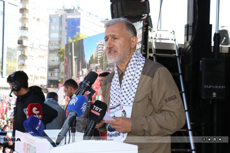 "Birleşmiş Milletler Güvenlik Konseyinde beş ayrıcalıklı devletin veto yetkisiyle kilitlenmesi, soykırıma zemin hazırladı." diyen Özçelik, şunları aktardı: "ABD, israile nükleer savaş gemileriyle destek verip, Birleşmiş Milletlerin ateşkes kararlarını altı kez veto ederek katliamın suç ortağı oldu. Aynı ABD, son iki yılda israile 30 milyar dolarlık silah yardımı yaptı, on binlerce Gazzeli’nin katledilmesine ortak oldu. israil, kuduz köpek misali Gazze’den sonra Lübnan’a, Suriye’ye, İran’a, Yemen’e ve Katara saldırıyor; Türkiye ve Kıbrıs’ı tehdit ediyor. Savaşı vatanımıza getirmeye çalışıyor. Bu azgın tehdit, tüm dünyayı kaosa sürüklüyor! Zalime karşı duran değerli Ankara halkı, israil, 'Arz-ı Mev’ûd' sapkınlığıyla yüz binlerce kardeşimizi katletti, milyonlarcasını yurtlarından sürdü. Yaklaşık iki yıldır Gazze’de 70 binden fazla insan, çoğu çocuk ve kadın, vahşice öldürüldü. On binlercesi enkaz altında, on binlercesi de kayıp. Gazze’deki 20 yıllık hukuksuz abluka, artık tahammül edilemez bir noktada. Bebekler, kadınlar, yaşlılar, 2 milyona yakın sivil, açlık ve hastalıkla boğuşuyor. Bu tablo, insanlığın vicdanını kanatıyor! Fakat umut var!"