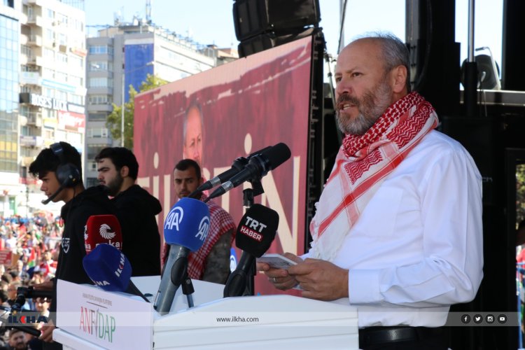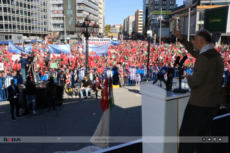 Özdemir, devamında şunları aktardı: "Bize bu muazzez yolu açan Ankara halkı tarih içindeki en müstesna yerini almıştır, muzaffer kardeşlerimizin bir kısmı esaretten kurtulmuş, diğer kardeşlerimiz ise özgürlüğü beklemektedir. Ülkemizin başkentinden Siyonist zindanlarında bulunan kardeşlerimizi selamlıyoruz. Kardeşlerim; bugün burada bu tarihi buluşmada tüm sosyal kesimlerle bir araya gelmiş bulunuyoruz. Bu büyük kardeşlik halkasının adı Büyük Gazze İttifakı’dır. Bu ittifak, milletimiz üzerindeki küllerin atılması ve KUDÜS özleminin bir kor ateş gibi parlamasıdır. Bugün bu karşımızda parlayan kor ateş Anadolu’dan Gazze’ye yüzünü dönmüş sizlersiniz. Bugün burada oluşunuz Gazze içindir. Gazze bizim gönül coğrafyamızın müstesna şiiridir."