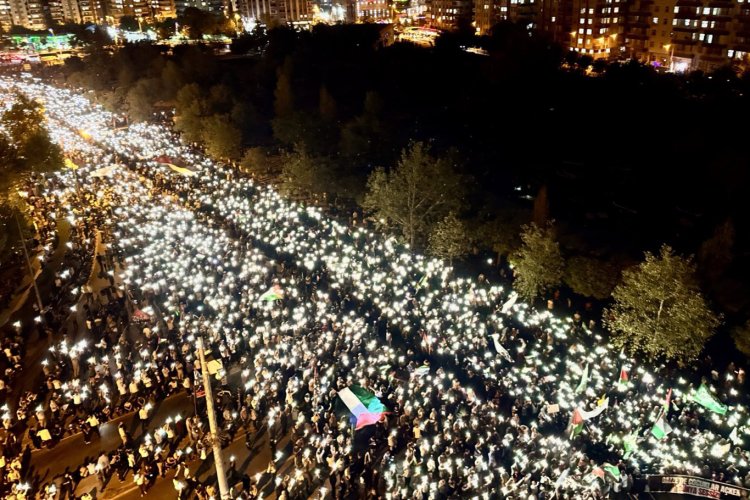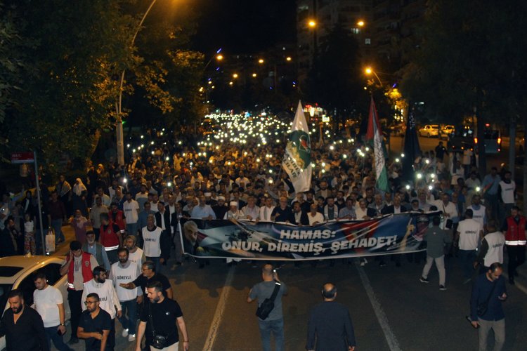 Diyarbakır İslami Sivil Toplum Kuruluşları öncülüğünde merkez Kayapınar ilçesi Dünya Kavşağında bir araya gelen Diyarbakırlılar, Aksa Tufanı Operasyonu yıl dönümünde yürüyüş gerçekleştirdi.