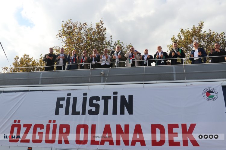 Filistin'e Destek Platformu çatısı altında çok sayıda STK'nın desteğiyle öğle namazında Ayasofya'da buluşan On binler, ellerinde Türkiye ve Filistin bayraklarının yanı sıra Gazze'ye destek mesajlarının yazılı olduğu dövizlerle sloganlar eşliğinde Eminönü Meydanı'na kadar yürüyüş gerçekleştirdi.