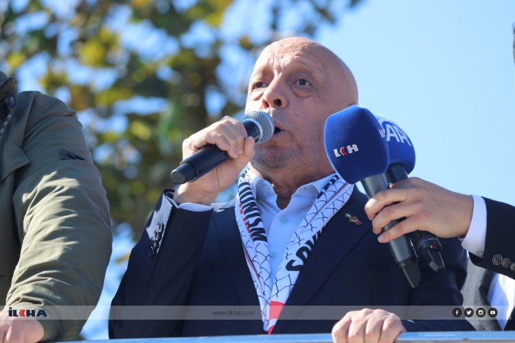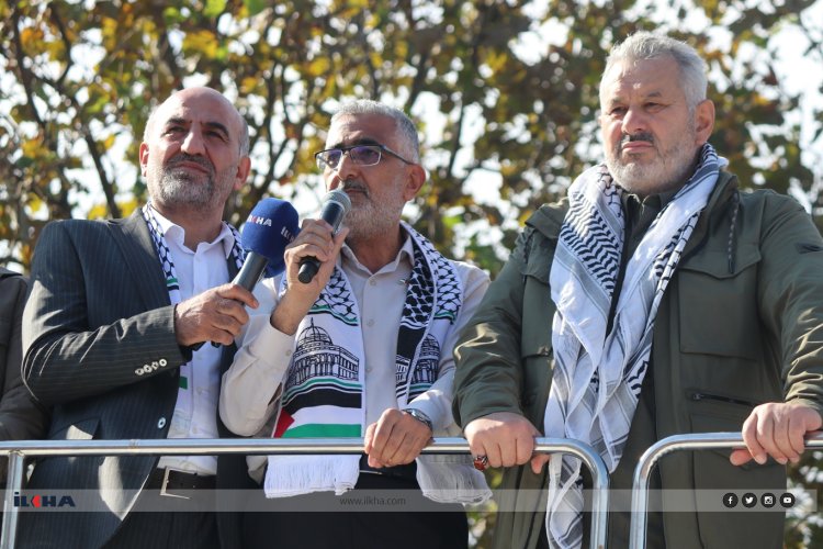 Ankara başta olmak üzere tüm meydanlarda Gazze için yürüyüş gerçekleştirenlere ve 2 yıldır işgale karşı direniş gösteren HAMAS'a ve Kassam Tugaylarına selam gönderen Arslan, "Filistin davası, artık Filistinlilerin davası olmaktan, Müslüman ülkelerin davası olmaktan çıkmıştır. Filistin davası, bir insanlık davasıdır. Gazze bundan sonra bir insanlık meselesidir. Onun için insanlığın koalisyonu olan, her yüzünün her bir yanından Filistin diye haykıran tüm mazlumlara bir kez daha teşekkür ediyorum. Onlarla dayanışmamızı daha da güçlendireceğiz ama bu toprakların da ayrı bir sorumluluğu var. Bu ülkenin ayrı bir sorumluluğu var. Biz duymasak da görmesek de onlar bizi görüyor, bizi duyuyor. Bu topraklara bakarak bekliyorlar." dedi.